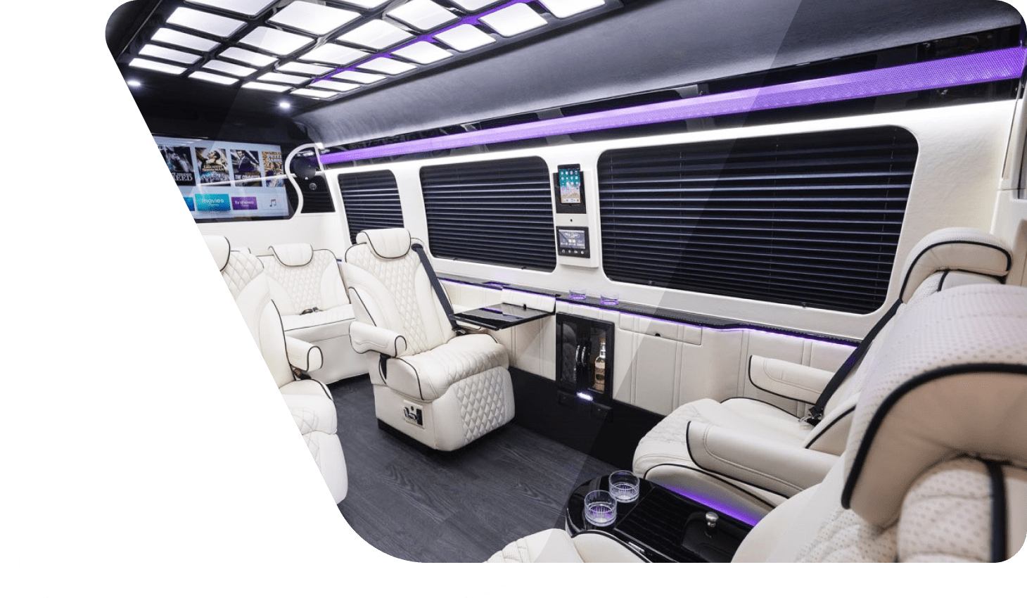 The Limo Sprinter offers a unique combination of limousine luxury and spaciousness. It seats 14 passengers with room for 16 bags. The interior boasts plush seating, mood lighting, and entertainment systems, creating an exclusive and festive atmosphere for any special occasion.